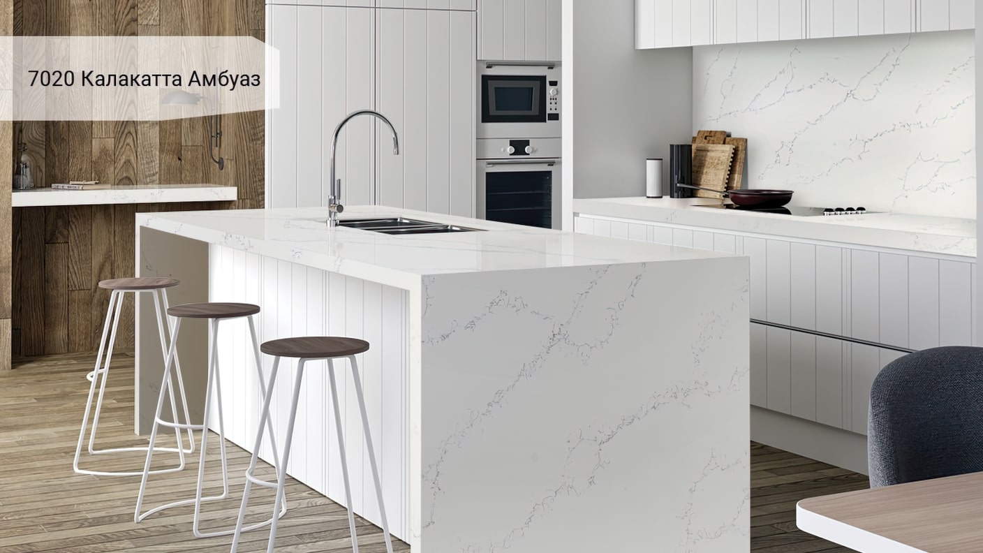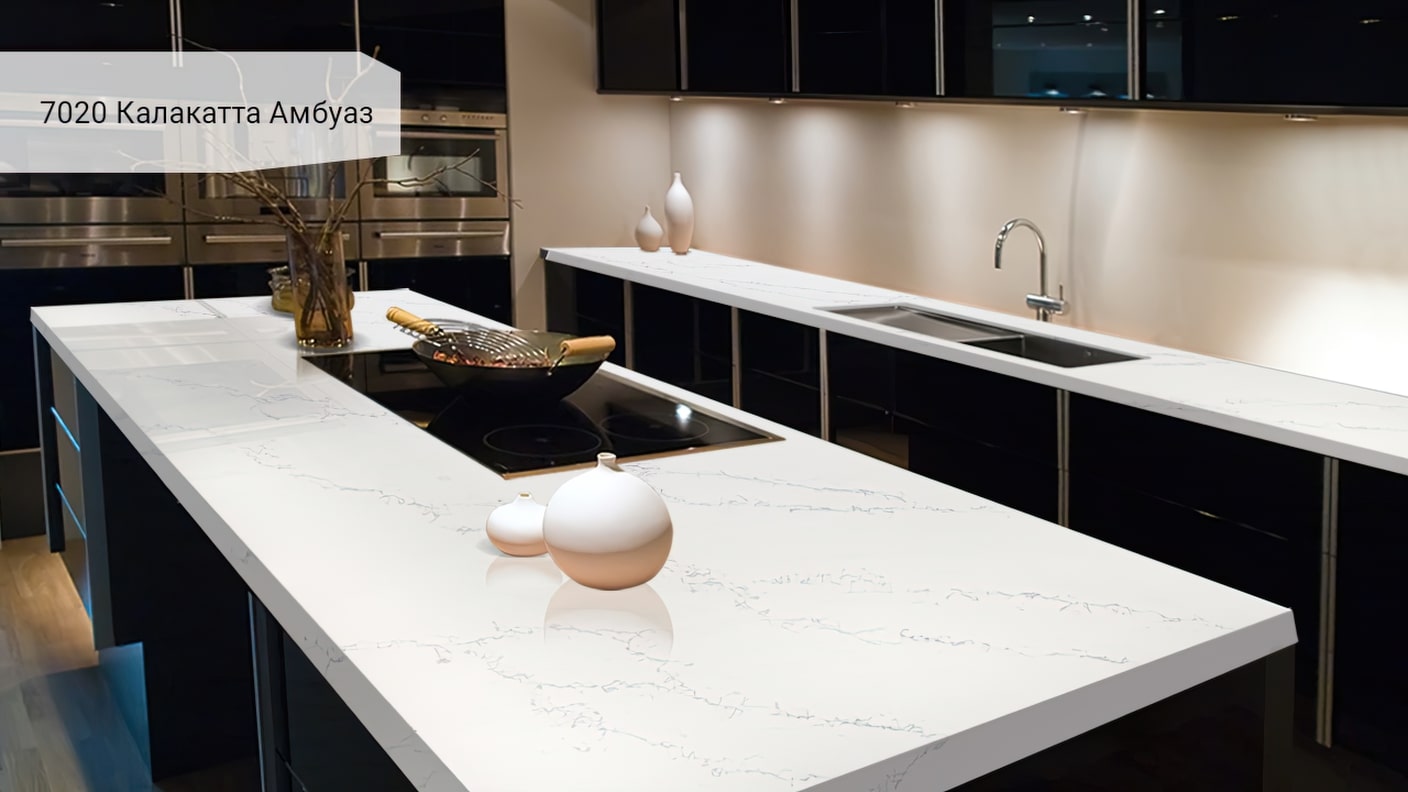 Компания EXIM STONE предлагает широкий ассортимент камня для отделки кухонь и ванн. Один из наиболее популярных продуктов нашей компании — это кварцевый агломерат Калакатта Амбуаз Avant Quartz 7020.