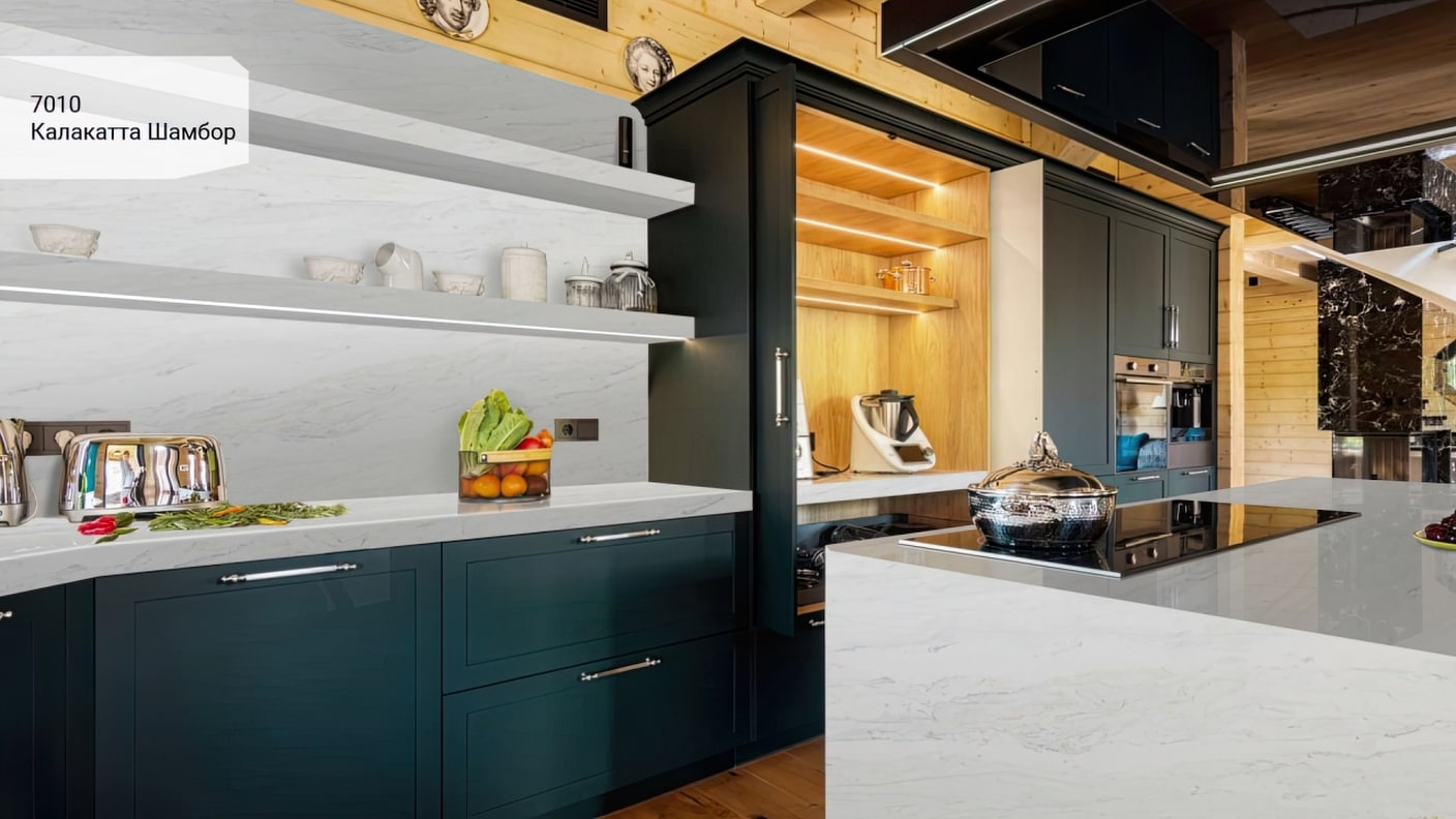 Купить столешницу из кварца, который сочетает в себе красоту натурального камня и прочность и практичность современных материалов, стало проще благодаря продукции компании EXIM STONE. Наша компания предлагает своим клиентам широкий выбор кварцевого агломерата, среди которых особое место занимает Калакатта Шамбор Avant Quartz 7010.