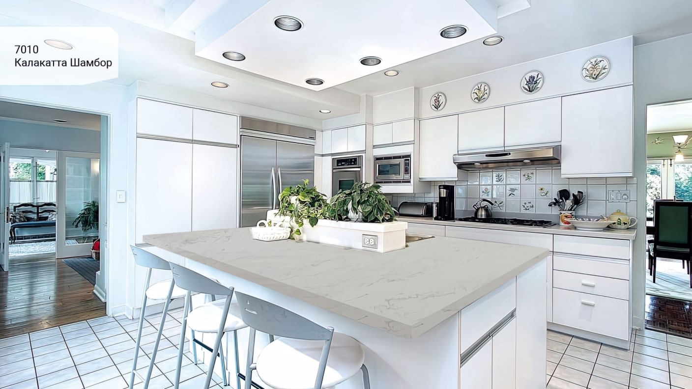 Калакатта Шамбор Avant Quartz 7010 – это материал, который можно использовать не только для изготовления столешницы на кухню или в ванную комнату, но и для других интерьерных решений. Он идеально подходит для создания столешницы на барную стойку, оконную или дверную отделку, а также для облицовки камина.