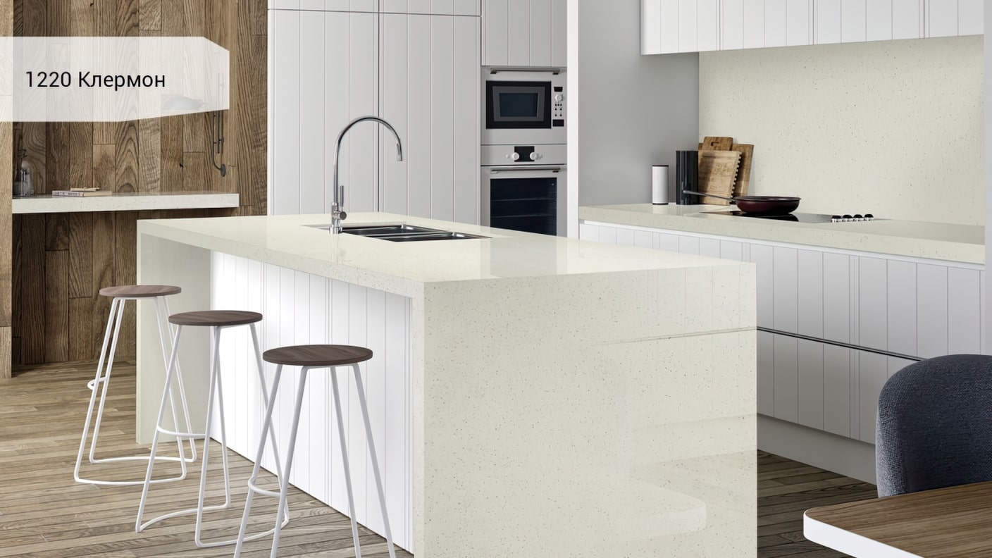 Кварцевый агломерат Avant 1220 Клермон имеет гладкую поверхность, которая легко очищается и не поглощает запахи. Он также устойчив к царапинам, ударам и пятнам, что делает его идеальным материалом для использования на кухонных столешницах, где ежедневно используются острые предметы и различные продукты.