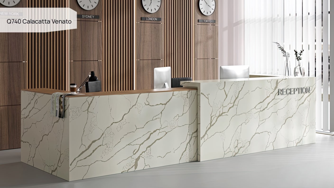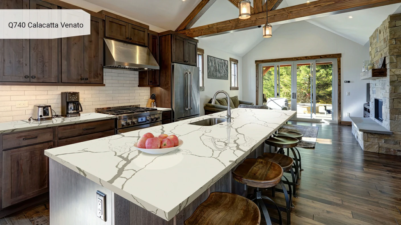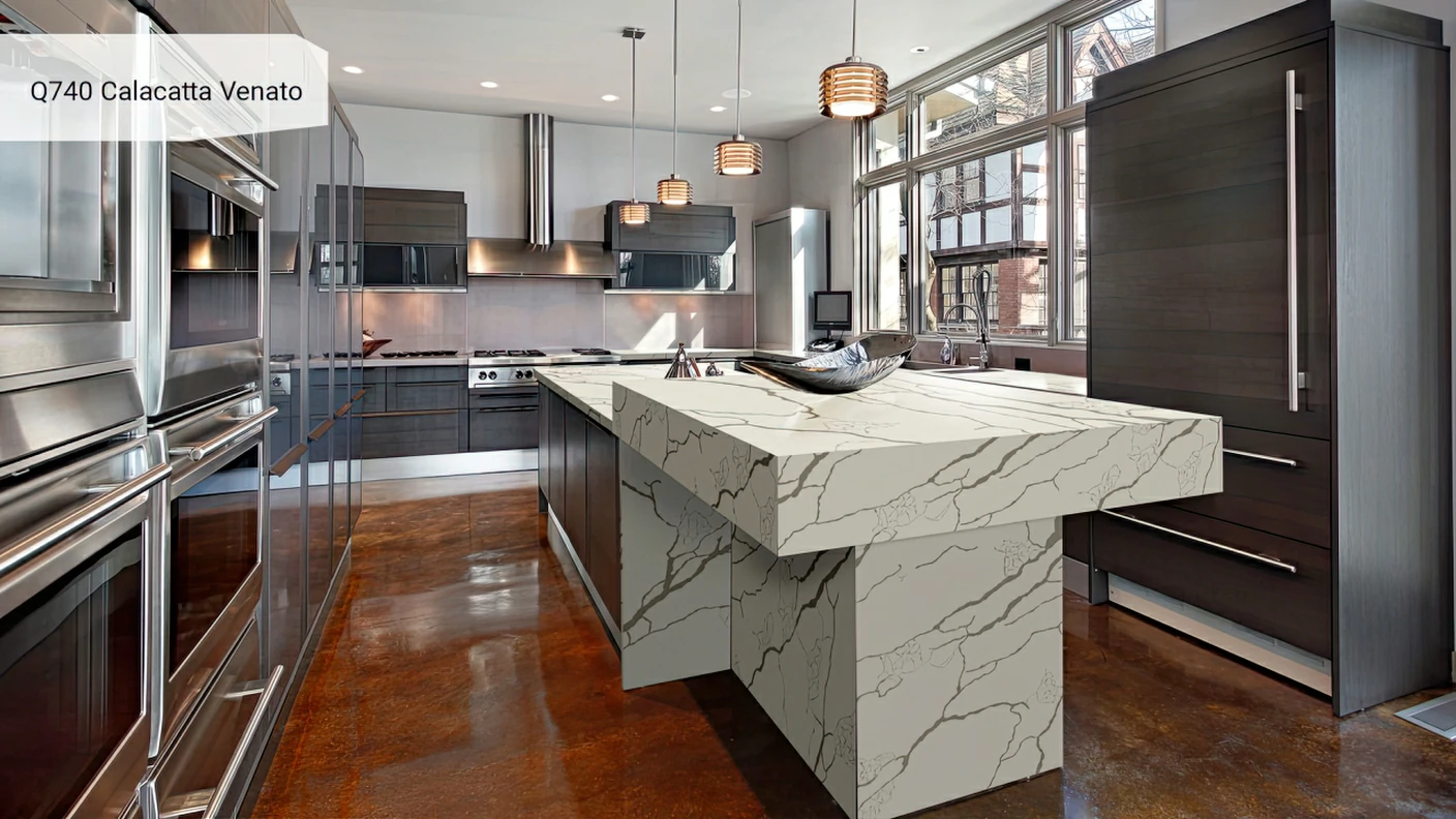Q740 Calacatta Venato имеет ряд преимуществ перед другими материалами для создания столешниц и других элементов интерьера: