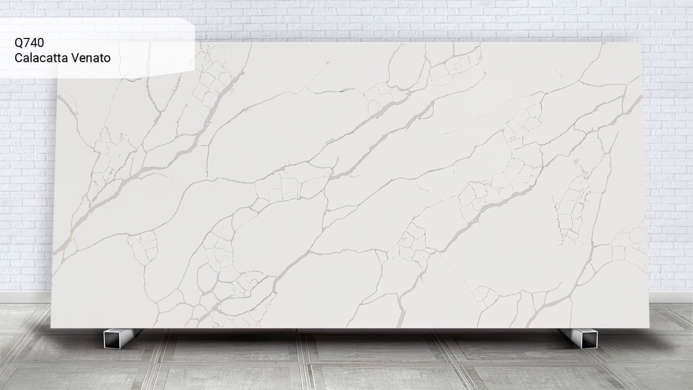 Кварцевый агломерат Q740 Calacatta Venato — это идеальный материал для создания стильных и функциональных элементов интерьера, которые будут радовать вас своей прочностью, долговечностью и эстетическим видом на протяжении многих лет. Купите столешницу из кварца Q740 Calacatta Venato прямо сейчас и убедитесь в ее превосходстве над другими материалами!