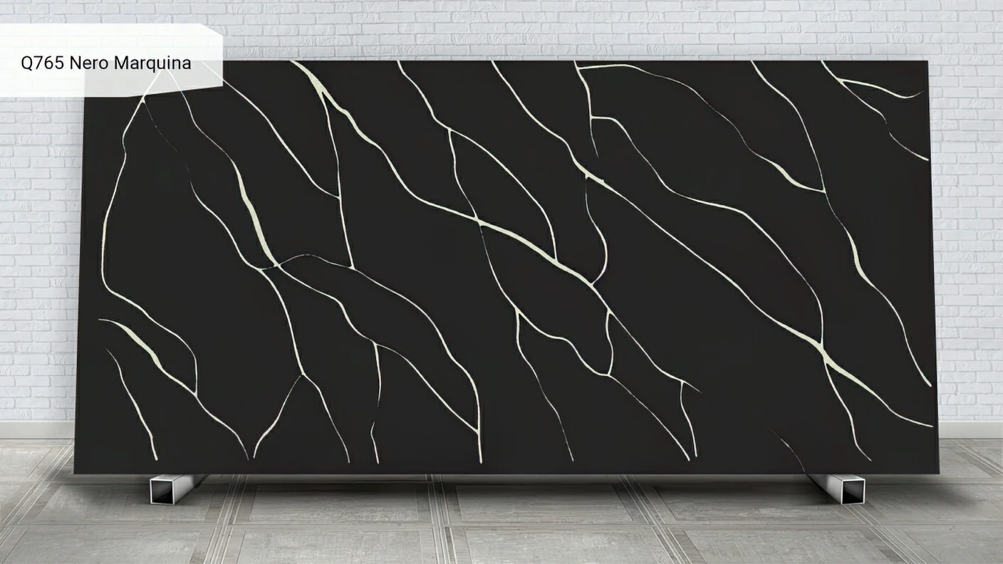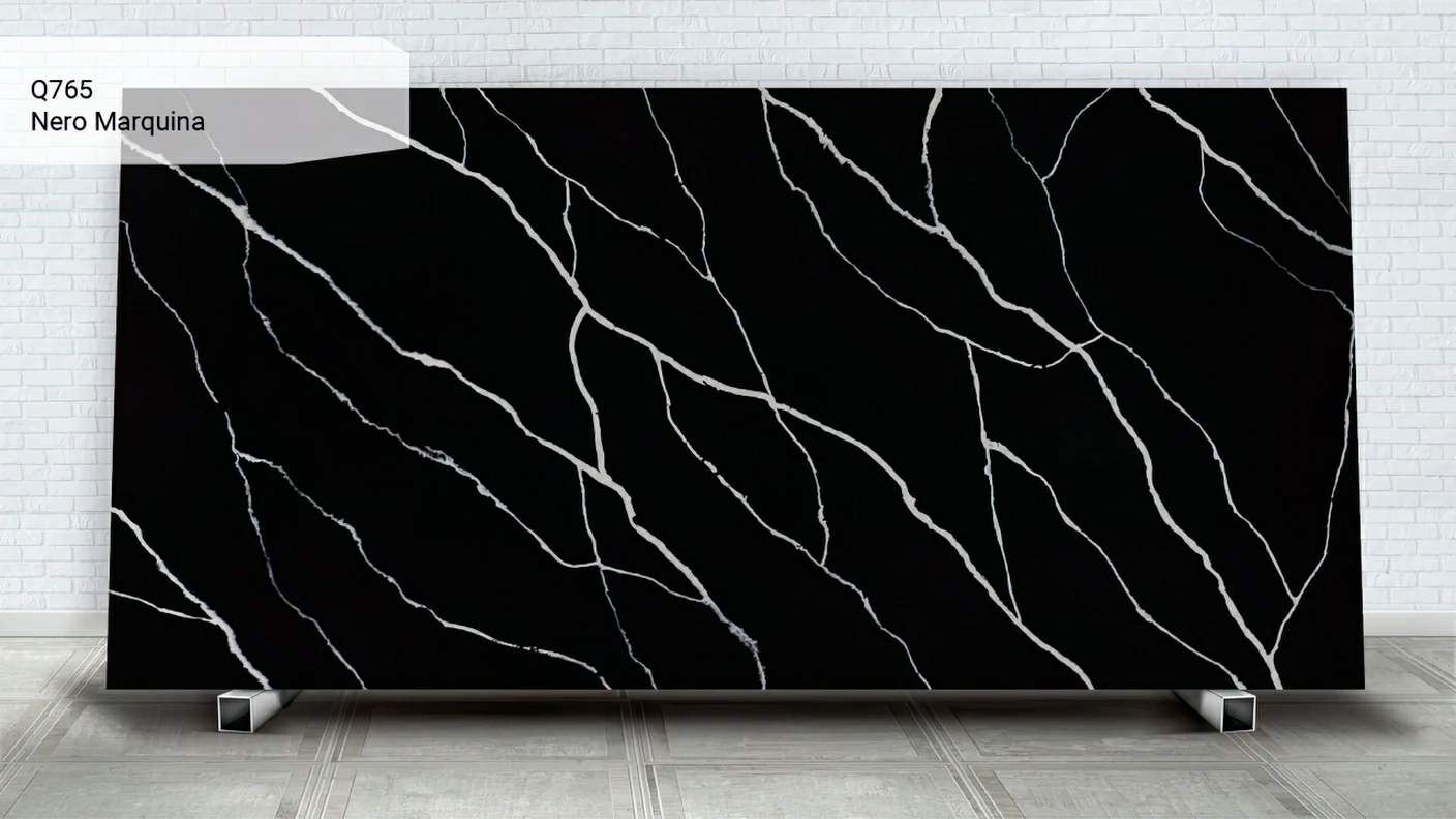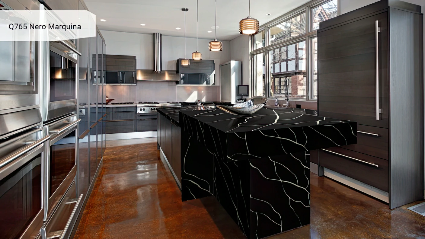 Кварцевый агломерат Q765 Nero Marquina от TISORO — это современный материал для изготовления кухонных и ваннных столешниц, который сочетает в себе высокие технические характеристики и эстетическое превосходство. Этот материал является одним из наиболее востребованных на рынке, так как обладает рядом преимуществ, которые делают его отличным выбором для любого интерьера.