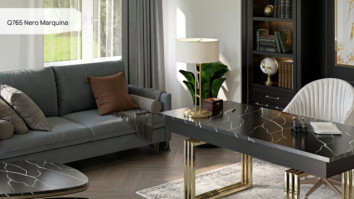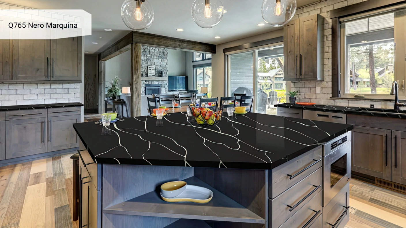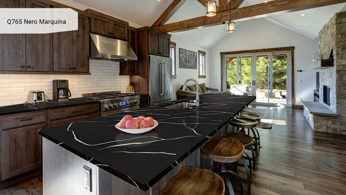 Кварцевый агломерат Q765 Nero Marquina от TISORO — это современный материал для изготовления кухонных и ваннных столешниц, который сочетает в себе высокие технические характеристики и эстетическое превосходство. Этот материал является одним из наиболее востребованных на рынке, так как обладает рядом преимуществ, которые делают его отличным выбором для любого интерьера.