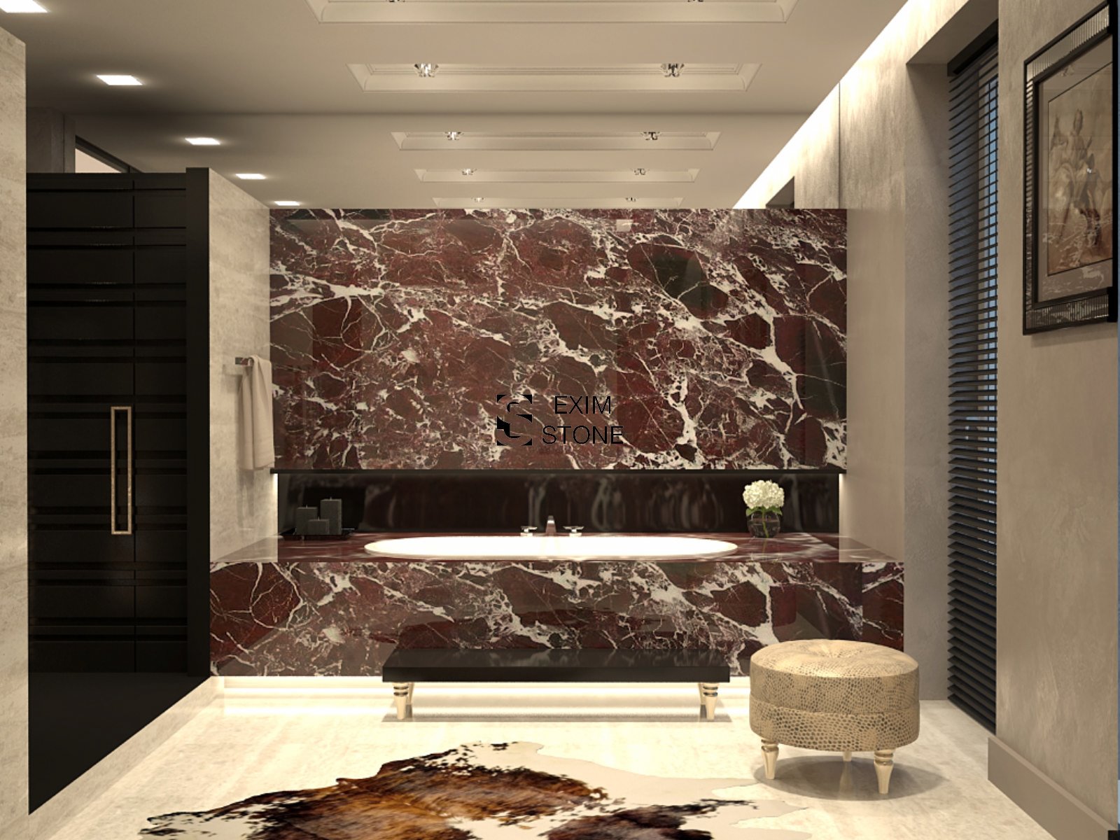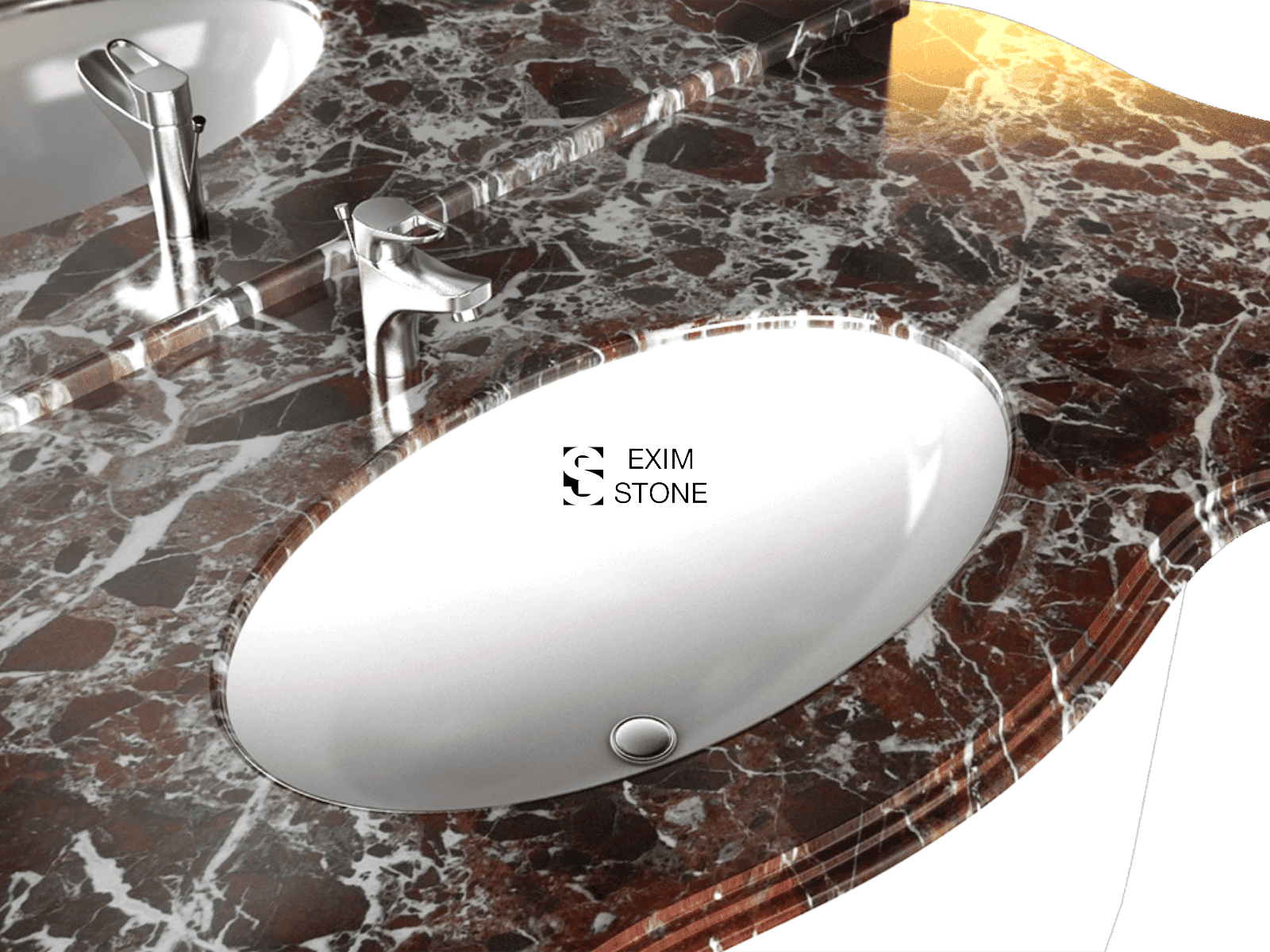 Это наверно самый популярный красно-бордовый материал в мире. Структура данного материала напоминает природную мозаику разбитую на тысячу частей и соединенную белыми прожилками. Данный материал пользуется очень большой популярностью у архитекторов и дизайнеров. Этот мрамор прекрасно сочетается как с светлыми так и темными видами камня. Специалисты компании «EXIM STONE» могут выполнить на профессионально-высоком уровне, в краткие сроки и по приемлемым ценам различные изделия из материала ROSSO LEVANTO, такие как мозаика, столы, колонны, столешницы для ванной, подоконники, столешницы для кухни, лестницы, ограждения, камины.