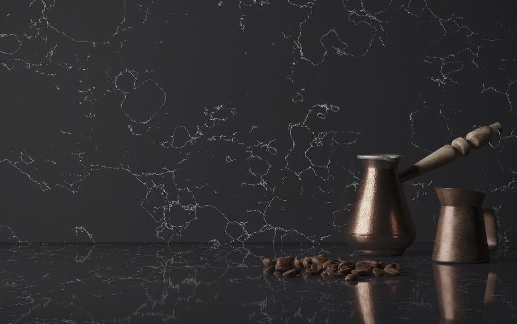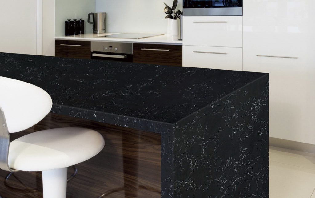 Черный цвет кварца, в сочетании с прожилками другого оттенка позволяет воплатить желания многих людей: совместить практичность кварца и красоту мрамора, а немаловажным дополнением будет то, что все это по разумной цене.